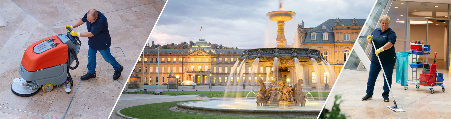 Definitiv unsere Lage! Stuttgart ist ja sehr speziell und wir liegen sehr zentral, nur zwei Kilometer vom Flughafen entfernt. Dadurch können wir extrem schnell reagieren. Unser Angebot erstreckt sich über das gesamte Spektrum der Gebäudereinigung: Unterhaltsreinigung, Grundreinigung, Sonderreinigung und Glasreinigung. Unsere Kundenstruktur ist eine gute Mischung aus öffentlichen und privaten Kunden.